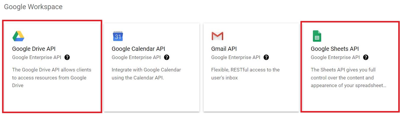 スプレッドシートを操作する場合、スプレッドシートAPIとGoogleドライブAPIを有効化します。